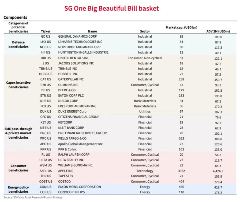SocGen wrapped up with a full OBBBA equity basket—a curated list of stocks positioned to gain from this sweeping fiscal package.