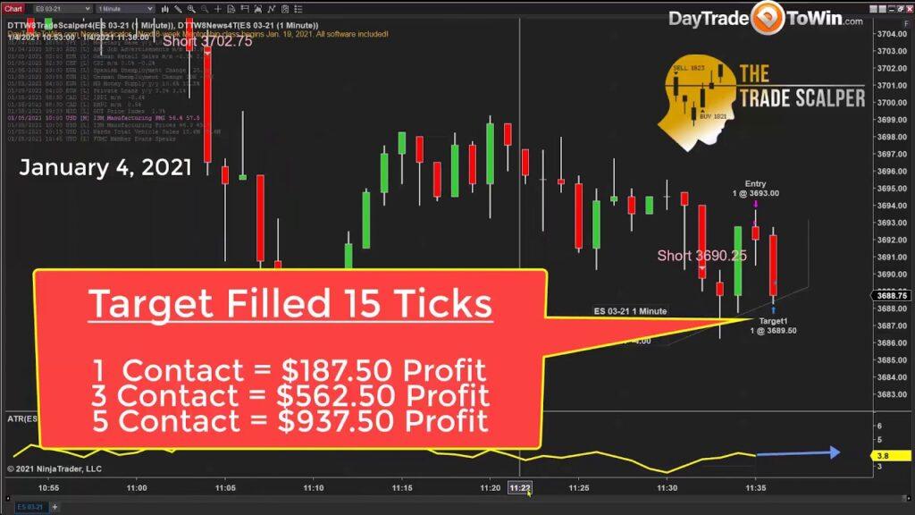 Have you been reading through our posts lately? If not, pause on this article and go back to the last two or three posts. You’ll see for yourself that John Paul clearly predicted there would be a major sell-off early in January 2021. Guess what happened on January 4, 2021 – the first full trading day of the year? The big-sell off he predicted. Wow! If you haven’t seen the video below, do yourself a favor and give it a watch. Maybe give it a subscribe as well on YouTube so you can get updated when new videos like this are released. You can Google the January 4, 20201 sell-off yourself and see that it is true. All the major media outlets reported on it: Fox, CNN, New York Times, MarketWatch, etc. Sure, the pundits had many causes for the sell-off. Who knows the true cause or factors. As price action day traders, we are more concerned with HOW we can use such predictions and HOW to find intraday opportunities on our charts. This is the main purpose of the latest video. In the video, you’ll see John Paul use the price action Trade Scalper trading software to identify opportunities. The Trade Scalper is ideal for this because you can find trades throughout the day. And when a sell-off occurs, it is not immediately apparent because after market open, it could just be a down day. You have to observe recent price drops using a daily chart time frame and know where recent lows are and average price drops of recent times. There is a certain threshold where a price drop becomes substantial, when it becomes a sell-off, and then later possibly, a crash. We tend to think of a sell-off as a more organized selling of assets rather than a fearful dumping, as with a crash. Therefore, it may be late morning or early afternoon before you think, “Yes, this is a sell-off,” and then get your trading systems primed for short (selling) opportunities. The Trade Scalper is well-suited for this purpose, as it provides opportunities all day long. Yes, some are better than others and that’s why students are taught how to find the best opportunities. Generally, scalping has you going for smaller profit targets with smaller stop losses than other methods. Nevertheless, there is significant hypothetical profit to be had. For instance, trading one contract may have yielded $187.50 for the 15-tick trade, according to John Paul’s video summation.